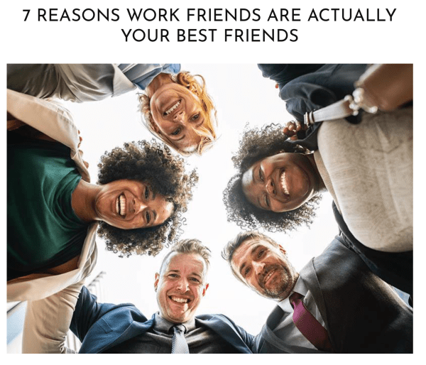 Work Friends Posted on October 1, 2019 by Christina https://herway.net/friendship/7-reasons-work-friends-are-your-best-friends/ I will forever cherish the ones I have made. Share this: Click to share on X (Opens in new window) X Click to share on Facebook (Opens in new window) Facebook Like Loading...