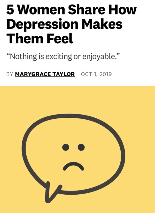 Sometimes, you’ll find your feelings validated in a poignant song or an incredible book, or catch a piece of your own experience in someone else’s journey. And for some reason, it just makes things seem a little better. Your depression is still there—but now, somewhere, you have an emotional soulmate.