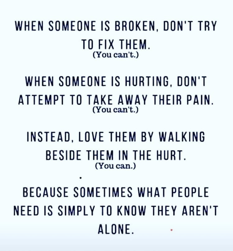 People have no compassion. People have no understanding. People will leave you hurt and alone, especially when you have expressed that you are struggling. I am not one of those people – I will walk with you throughout the journey.